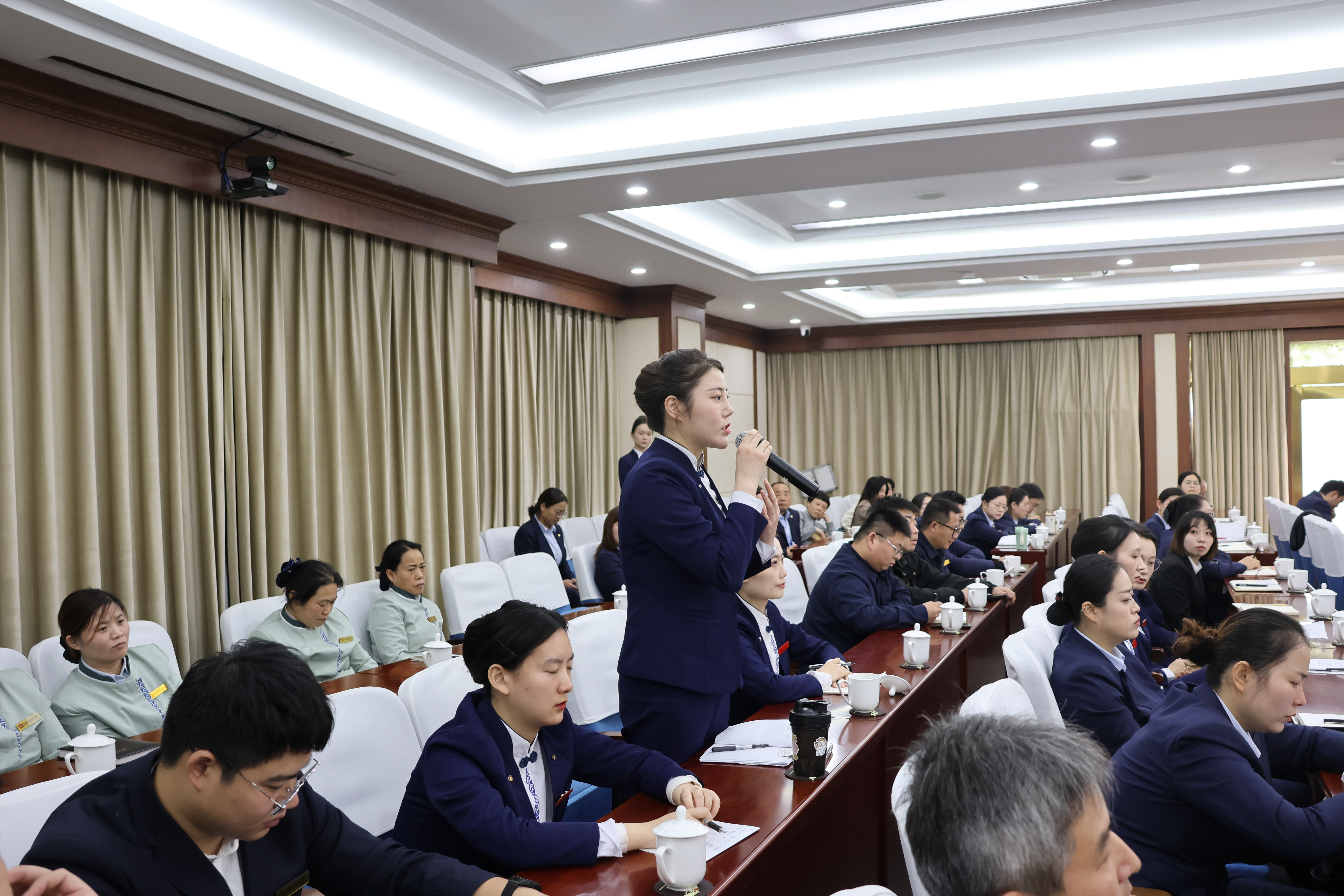 在互动交流环节,各片区、条线与层级的职工代表踊跃发言,现场气氛热烈。设备维修、项目经理、协作单位及新进职工等十余名代表,就廉政防控、员工关怀、人才培养、协作管理、安保标准等实际问题提出疑问。领导班子与员工面对面交流,倾听诉求、解答疑惑,既阐释政策理念,也提供具体解决方案。该环节不仅是“清·亲”文化的具象体现,也考验了领导班子的工作思路与回应能力,进一步统一了思想,增强了全员对高质量发展与文化建设的认同。