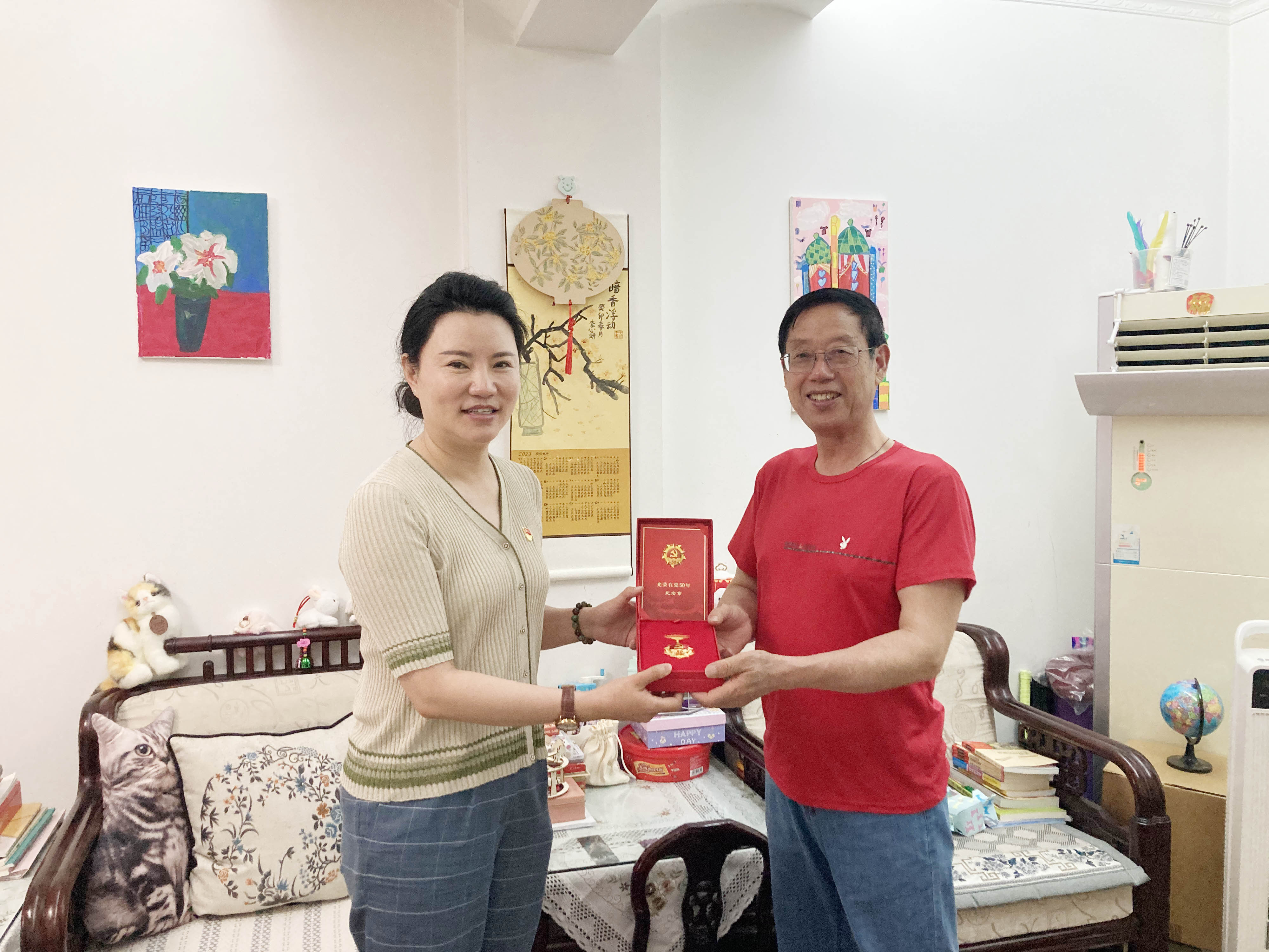 革命薪火永相传,慰问活动暖人心。7月初,中心党支部扎实开展走访慰问困难党员暨“光荣在党50年”纪念章颁发活动,为老党员送去党组织的关怀和温暖。支部书记周涛一行人先后来到李传军等老党员家中,聆听他们讲述峥嵘岁月,回顾党的光辉历程,关切询问他们的生活和身体状况,感谢他们多年来为中心作出的贡献,向他们致以节日问候和崇高敬意,并亲手为他们佩戴“光荣在党50年”纪念章,送去慰问品,希望他们永葆共产党员本色,继续发挥余热,积极为物业中心建设发展建言献策,贡献力量。